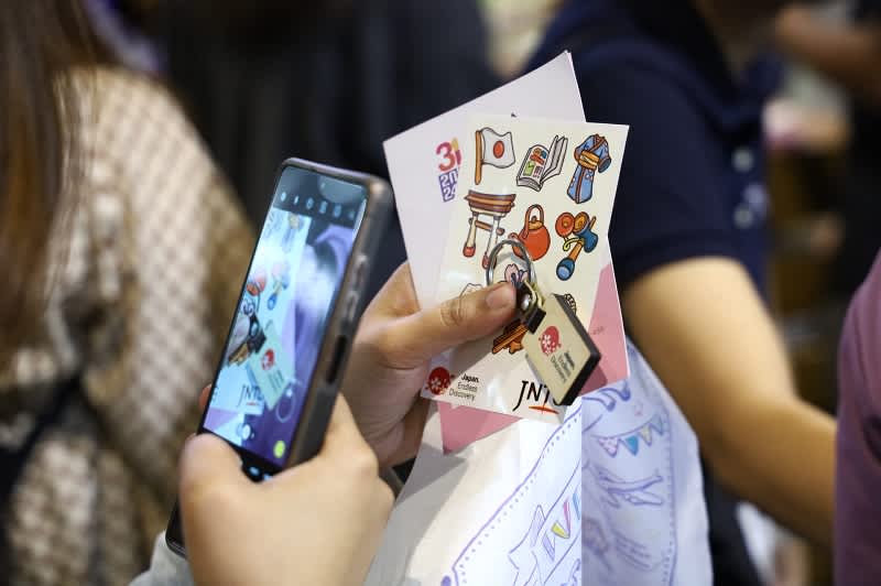 As for visitors who enjoyed their stay at the Visit Japan Pavilion and answered a survey, they took home a personalized bookmark featuring Japanese calligraphy.