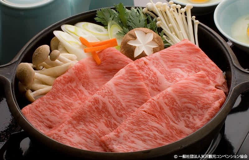 A popular way to enjoy Yonezawa beef is in sukiyaki, a hot pot dish that uses thinly sliced beef mixed with noodles, mushrooms, and tofu. It also uses a special sweet sauce that contains miso which further amplifies the taste of the beef. The beef is dipped in beaten eggs before being consumed.
