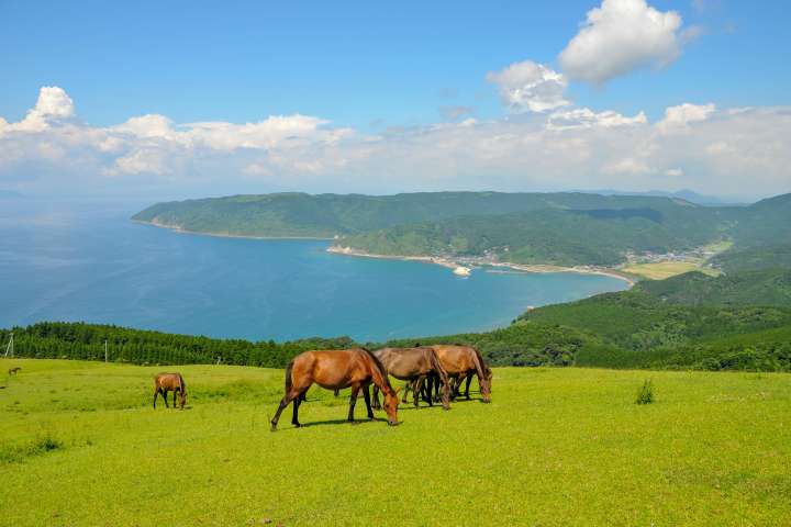 Continue south to Cape Toi, a scenic headland where you can spot the Misaki horses, a rare native Japanese breed that roams freely across the grassy slopes. With an ocean vista and wild horses grazing about, it’s a truly unique Southern Kyushu experience.
