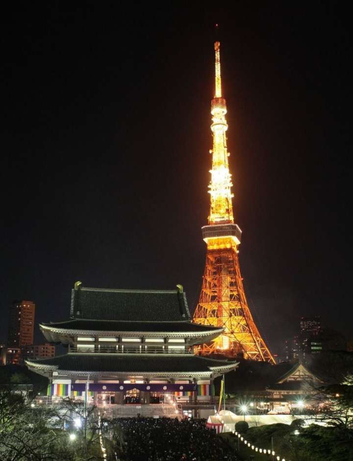 Similar to Meiji Jingu, Zojo-ji is open throughout the night for countdown. Keep an eye on the time and look around when it hits 11pm – a large fire is lit on the temple grounds as part of the “Jobone” sacred burning ritual.