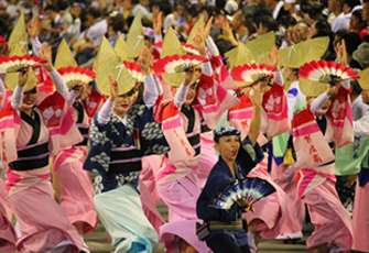 Of the many dance festivals in Japan, one of the most famous is Tokushima City’s Awa Odori, which has a history of over 400 years. Some say it was originally a dance for the obon (Buddhist custom to honor the spirits of one's ancestors) holiday, and now it attracts over a million spectators and dancers to Tokushima, creating a huge carnival atmosphere.