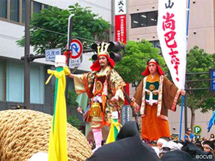 Dontaku kicks off with a colourful Matsubayashi procession of the three gods – Ebisu (business), Fuku-no-kami (longevity), and Daikoku (wealth) – on horseback through the city over the course of the two days, followed by a parade of four vibrantly-coloured Flower Cars (these are illuminated at night). There is also a huge parade involving over 20,000 people in vibrant costumes, dancing to lively music throughout the festival.