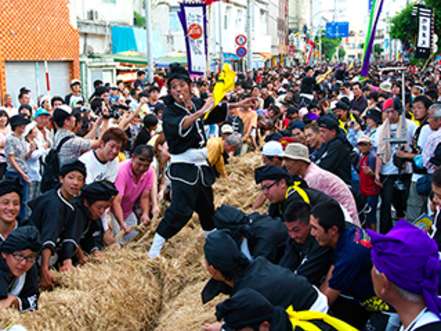 The giant tug-of-war rope is listed in the Guinness Book of World Records as the world’s biggest straw rope, measuring 200m long and weighing 43 tonnes. It consists of a "female" rope (Miinna) to the West, and a "male" rope (Woounna) to the East, joined in the middle by the kanuchibō (a wooden rod).