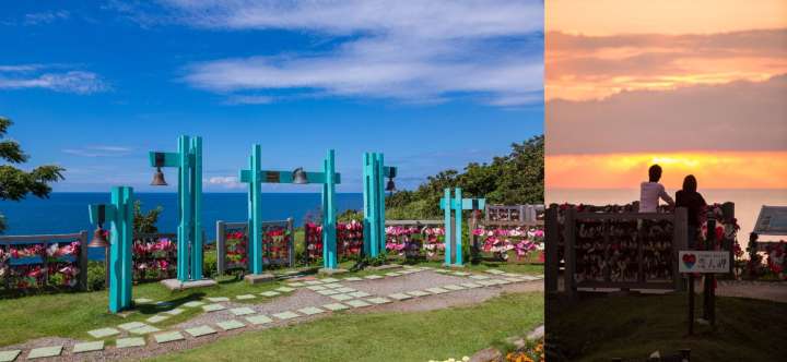 A cape embraced by the Sea of Japan, providing striking panoramic view of the Sado island at the spiritual mountain “Yoneyama” and “Yoneyama Bridge” on sunny days. It is also known as “the Lover Cape” for its said natural power of love, with massive number of locks on the fence whereby visitors make wishes for their happiness. You may purchase the wishing lock, along with many lovely heart-shaped souvenirs at the “Café and Shop Seagull”. It is highly advisable to visit the place during sunset.