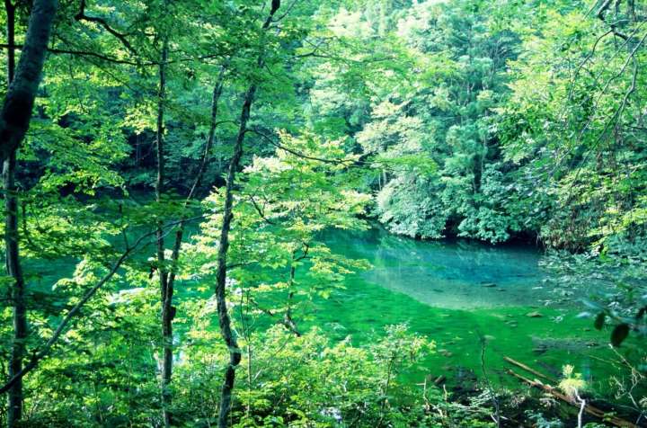 A pond tucked deep inside a forest and formed by fresh spring water. It becomes a mystical and fascinating spot when fog forms.