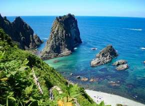 The Shakotan Peninsula, located on Hokkaido’s west coast, is famous for its sea urchins, which are only available from June to August. Cape Shakotan, located at the end of the peninsula, is the most popular scenic site there. It has three walking tracks where you can see the Jorokoiwa rock formation, which represents the family members of a local samurai who were devastated when he left them to go to Mongolia (according to legend). From Cape Shakotan, you can see Shimamui Coast, which was selected as one of the best 100 beaches in Japan. To get there, take the Hokkaido Chuo bus for Shakotan Kamui from Sapporo.