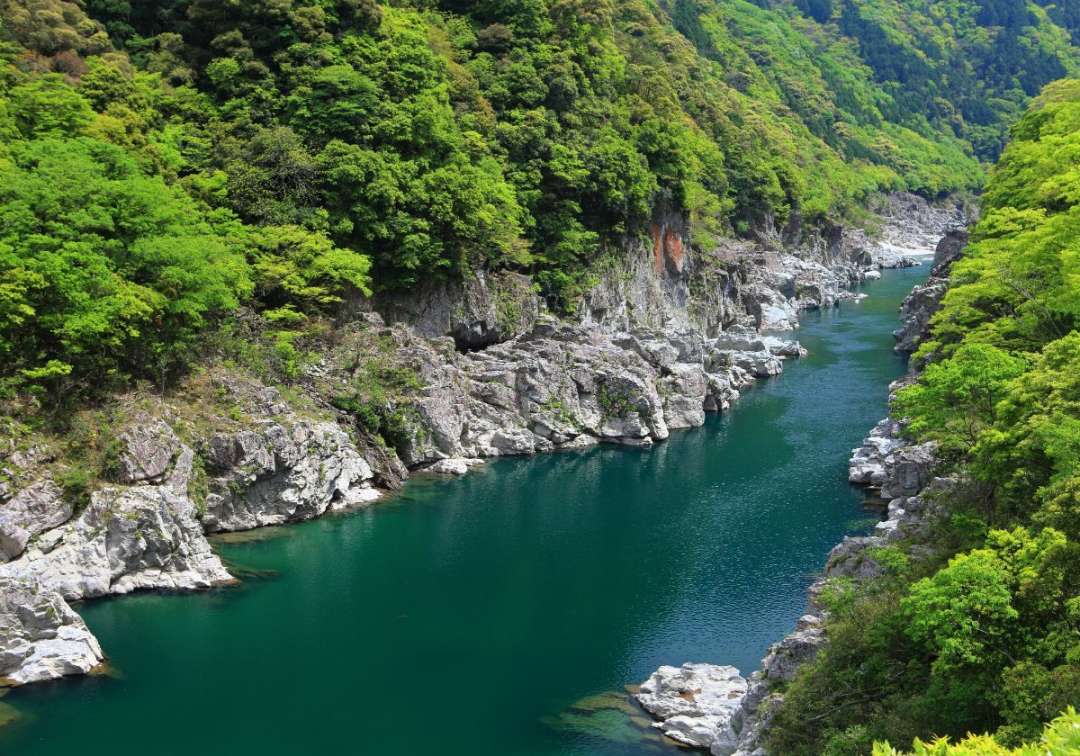 An approximately 8-km long canyon created by 200 million years of erosion by the Yoshino River. The emerald green water and the canyon walls standing like grand sculptures give a true sense of nature’s overwhelming beauty.