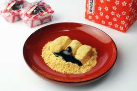Yamanashi Prefecture is famous for a chewy rice cake confectionery called Kikyou Shingen Mochi. Founded in 1968, it is a bite-sized ball of mochi rolled in kinako (soybean) flour, and topped with kuromitsu (brown sugar) syrup which is served separately.