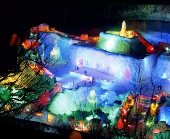 At this event, there are structures and sculptures made of pure ice. The area is illuminated with rainbow colored lights at night, creating a magically beautiful scene worthy of being chosen as one of Japan’s night view heritage spots.