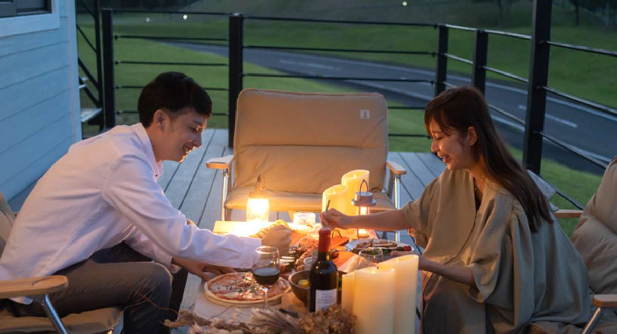 Nokka is where sustainability and exclusivity meet luxurious glamping. Designed for comfort, this glamping spot in Japan is perfect for couples of all ages, from young travellers to those celebrating a lifetime of love together. Depending on the room type, its well-appointed interior includes air-conditioning, a living area, a kitchen, plush beds, and an ensuite bathroom. With large windows that offer panoramic views, couples can enjoy a cup of coffee while soaking in the surrounding beauty from the comfort of their room.