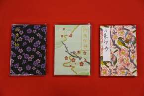 Even the goshuin from Dazaifu Tenmangu has a seal featuring a pretty plum blossom pattern at the centre, while its limited-edition goshuincho (¥2,500) has pink plum blossoms prints and Japanese nightingales designed by a renowned textile artisan.