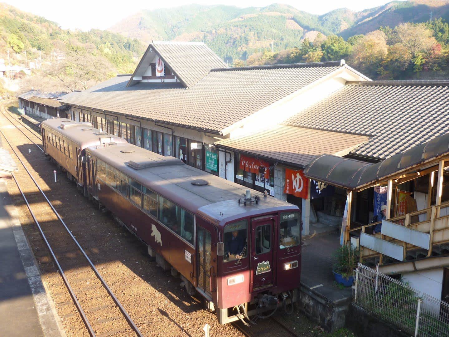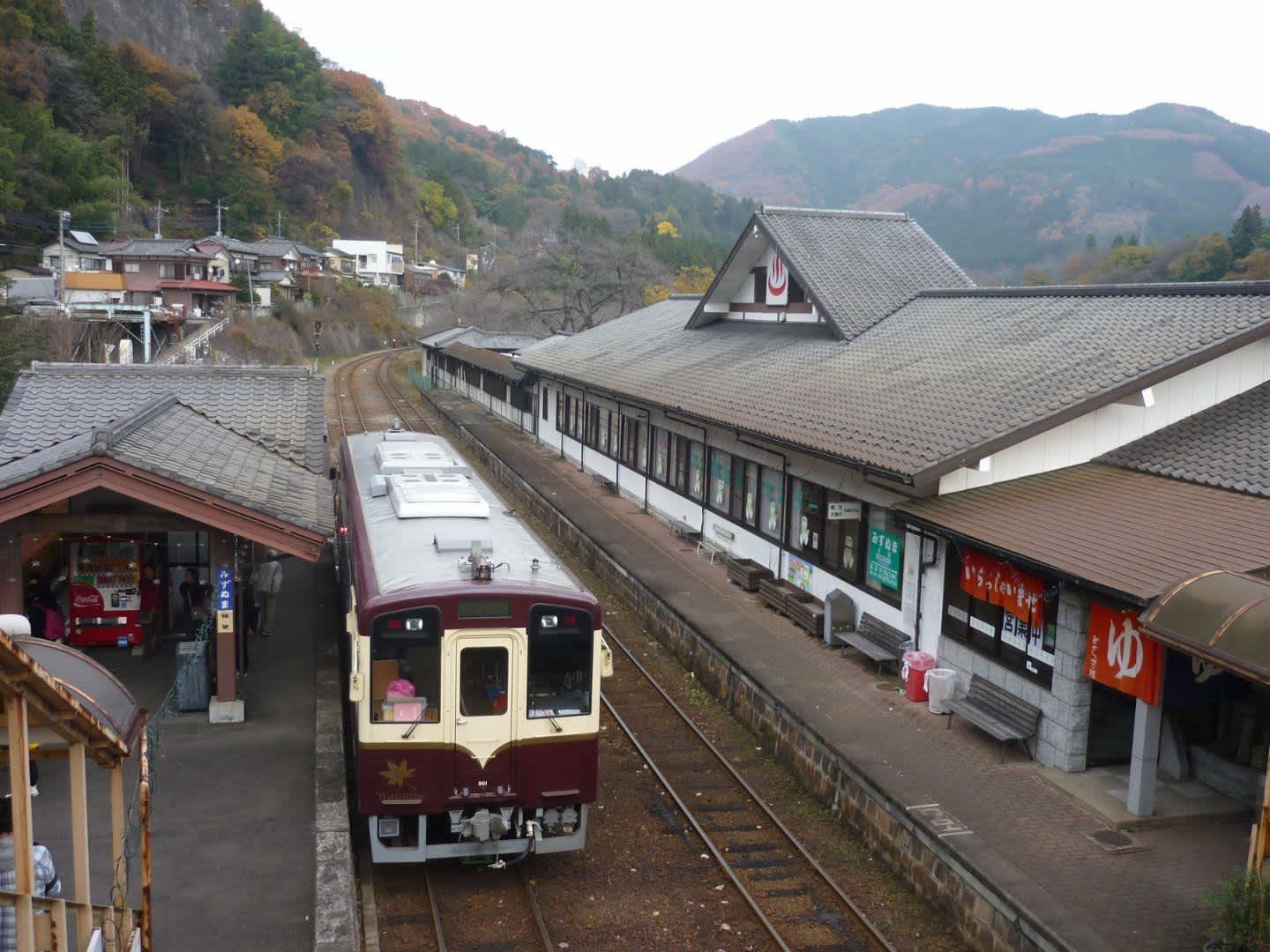 In the Kanto region, it is common to find onsen in train stations. So, we were delighted to find an unmanned station on the local Watarase Keikoku Railway line that runs between Kiryu in Gunma Prefecture and Nikko in Tochigi Prefecture.