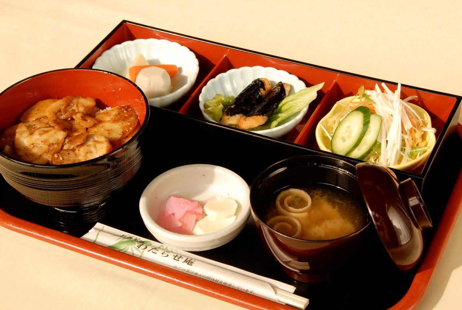 If you are looking for some quick bites during your stopover, you have to try the “Yama Unagi Bento”. “Yama unagi” literally means “mountain eel” in Japanese, but it is actually a kind of Japanese yam growing in the surrounding mountains and also the regional specialty. This bento is an “ekiben” (bento box sold at stations) available at the diner nearby made with “yama unagi” and grilled chicken.