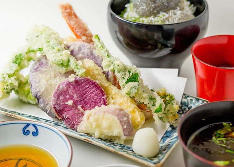 Akimoto is a popular restaurant where you can savour Kamakura's signature mountain vegetables and shirasu (whitebait) which are particularly famous in this part of Japan. Must-try dishes include a shirasu rice bowl and the vegetable tempura set.