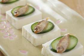 Tofu is common in Okinawa, and you can find it in various forms. One of them is the jimami tofu made of peanuts – it is creamy and slightly sweet, usually served with thick, sweet soy sauce. Other tofu dishes include sakugarasu which are small tofu cubes, each with a tiny pickled fish on top, and the tofuyo which is a red-coloured cube of fermented tofu with a strong, pungent flavour.