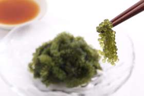 Resembling green caviar, umibudo is a type of edible seaweed that is native to Okinawa. The tiny balls pop in your mouth to release a little burst of refreshing salty flavour similar to caviar – this is why it is nicknamed “green caviar.”