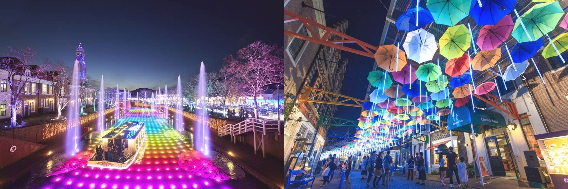 Many of these are comparable to those big ones in Tokyo and Osaka, such as the headline-making “HIKARINOMACHI HAKATA” project with as many as 800,000 glittering light bulbs in the plaza of Hakata station. The “Kingdom of Light” lighting in Nagasaki Huis Ten Bosch in 2019 features the biggest sparkling tree and the “Canal of Lights and Fountain” whereby you can see lights of rainbow colours and illumination show!