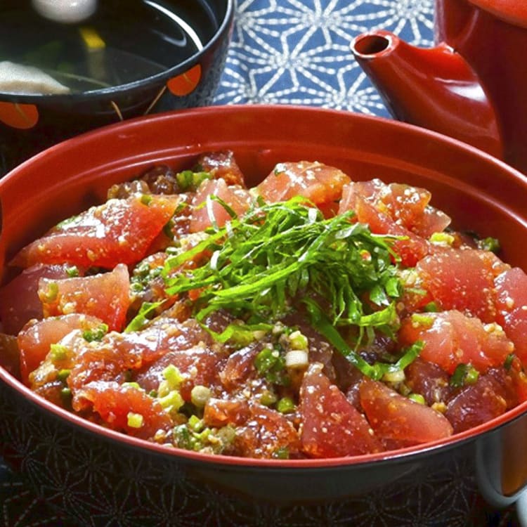 Located in the southern part of Oita Prefecture, Tsukumi City includes “Nippo Kaigan Quasi-National Park” and presents visitors with a unique natural contrast between its deeply indented ria coastline and the “mikan” (mandarin orange) terraced fields. Besides the top-quality produce coming from the mountain sides, among which the mikan certainly stand out with a variety of kinds and high quality, its sea is brimming with cultivated tuna. Since there is a base of tuna fishing here, the city has a lot of restaurants serving tuna dishes. “Hyuga-don” is a dish in which slices of tuna are marinated in sesame oil sauce and then served on a bed of rice. It is one of the representative food of the city and supposedly was created to offer fishermen a quick, tasty and nutritious meal so they could face the adversities of open-sea fishing. Its sesame flavor stimulates your appetite.