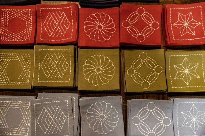 There are colorful textile arts, too. Durable and visually striking, Hida Sashiko is a form of hand-stitched embroidery used on noren curtains, bags and clothing.