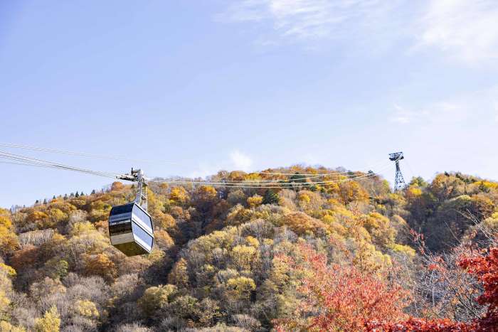 As we rise, the scenery shifts from rich autumn hues to snow-covered ridges. At the summit, an observation deck offers breathtaking views of the Northern Alps. This area also serves as the trailhead for hiking, nature walks and winter snowshoe tours.