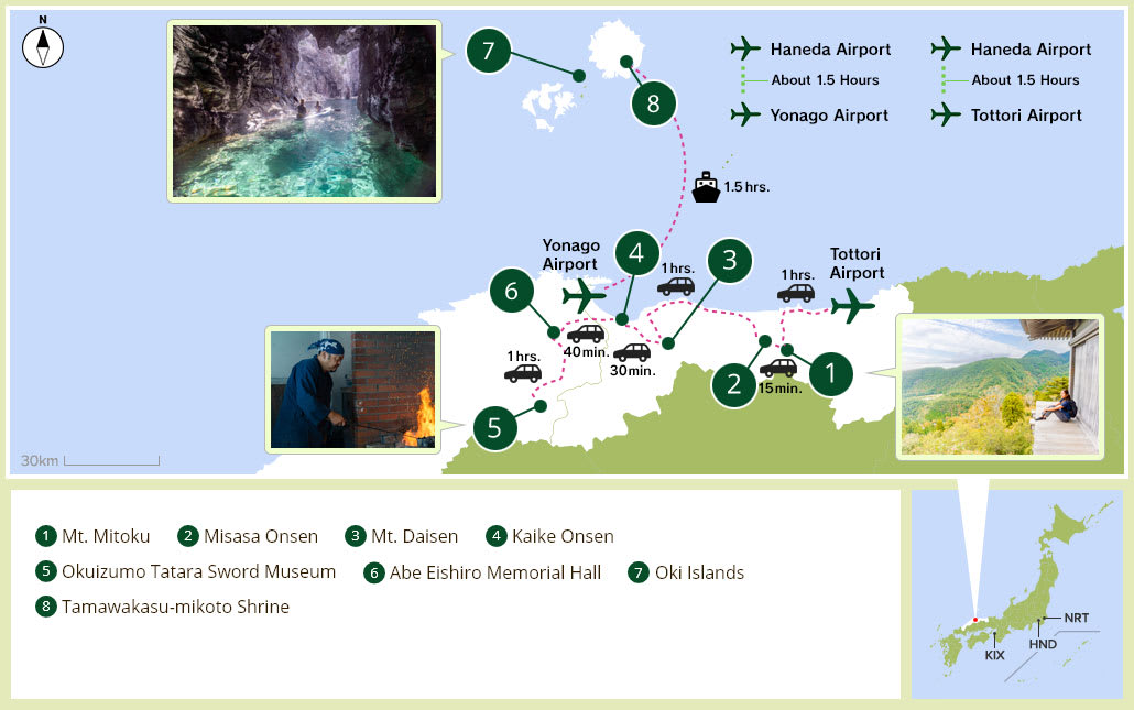 The San’in Region, encompassing Tottori and Shimane Prefecture, lies along the Sea of Japan. With deep ties to Japan’s creation mythology, it has long been revered as the gathering place of the gods. For centuries, the verdant forests, rugged coastlines, and soaring peaks of San’in have inspired a rich cultural heritage, from mountain asceticism to gleaming swords forged by master craftsmen and delicate washi paper hand-made with exquisite technique. Drawn by the allure of this storied land, we set out to explore its pristine landscapes and age-old traditions.