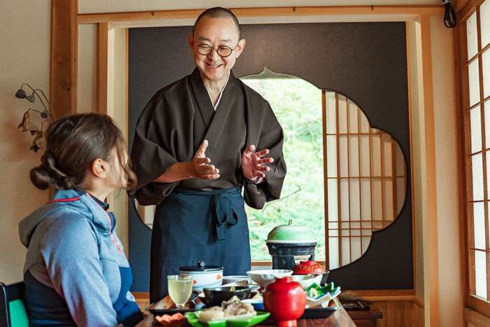 Our journey led us to the tranquil grounds of Daisenji Temple and Ogamiyama Shrine, tucked at the end of the trail. After taking a moment to appreciate the ancient architecture and spiritual atmosphere, we sat down for lunch at Sanrakuso, a family-run temple lodging. There, we were treated to shojin ryori—traditional Buddhist vegetarian cuisine. The meal was a medley of seasonal mushrooms and wild plants, foraged from the mountain slopes and prepared with centuries-old recipes.
