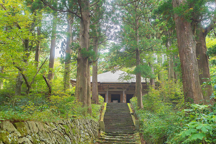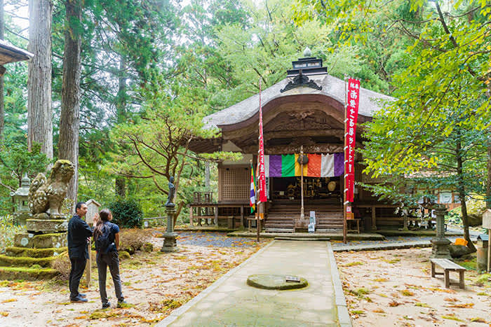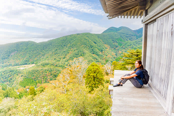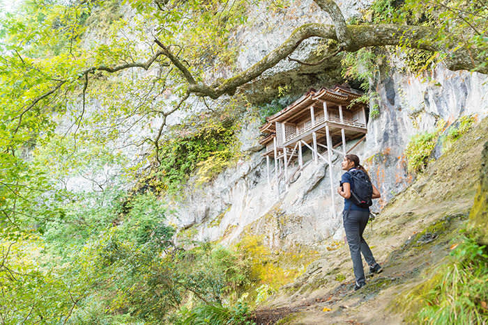 At the end of the trail sits Nageiredo Hall, the crowning gem of the Mt. Mitoku temple complex. Believed to be built 1,000 years ago, it clings to a sheer precipice, perched on wooden stilts. It is unclear exactly when and how this architectural marvel was built, but legend has it that it was cast into a cave by the spiritual powers of a monk, giving it the name "Nageiredo". Now, it has earned the reputation as Japan’s most precarious National Treasure.