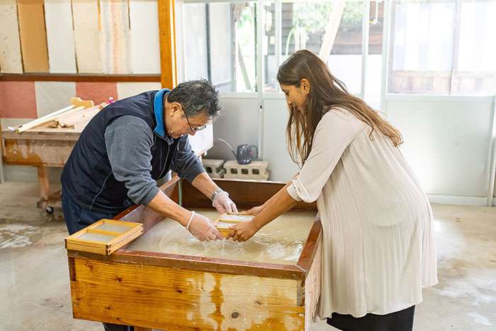 Later, we had a chance to create our own washi postcards, under the careful guidance of Abe Eishiro’s grandson. As we left, his humble words lingered with us: “The papermaking process is only complete when it is written or drawn upon.”