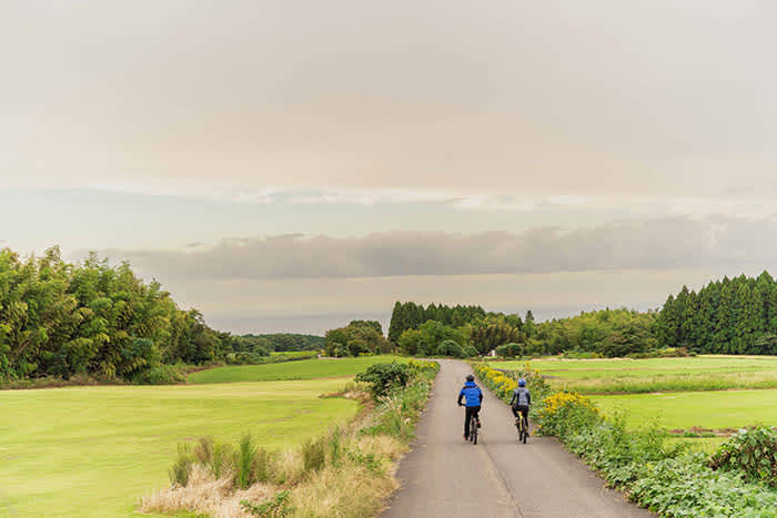 After lunch, we set off on a downhill cycling excursion that would allow us to make the most of the town’s hilly terrain. The views were dynamic and ever-changing—we zipped through forests, wide open pastures, and long roads with far-reaching views of Miho Bay, and Mt. Daisen looming in the background. “Daisen is a fascinating mountain, as it looks different from the angle you look at it,” commented our guide. “From some spots, it has a striking resemblance to Mt. Fuji.”