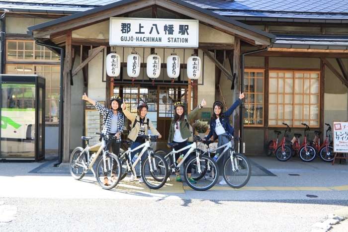 From JR Nagoya Station, take the Tokaido Main Line for about 20 minutes to JR Gifu Station. From there, walk for about 7 minutes to the bus terminal and take the Gifu highway bus for about 1 hour 20 minutes to Hachiman Ekimae Bus Stop. From there, walk for 3 minutes to the Gujo Hachiman Station, where you will begin your cycling tour.