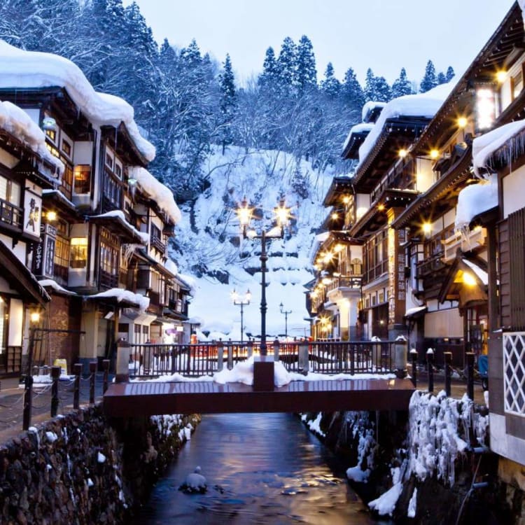 While visiting Yamagata, you may consider staying at one of the more popular hot spa areas in Japan, Ginzan Onsen. Here, you can still feel the Japanese traditional atmosphere with the view of the onsen accommodations (Japanese style hotels) still in business along the river side, just as it was from long time ago.