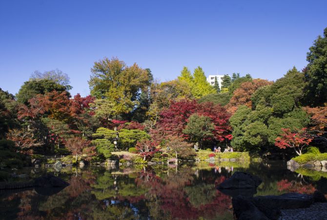 At the center of the garden is a pond called Shinjiike, patterned after the Chinese cursive character for "heart"