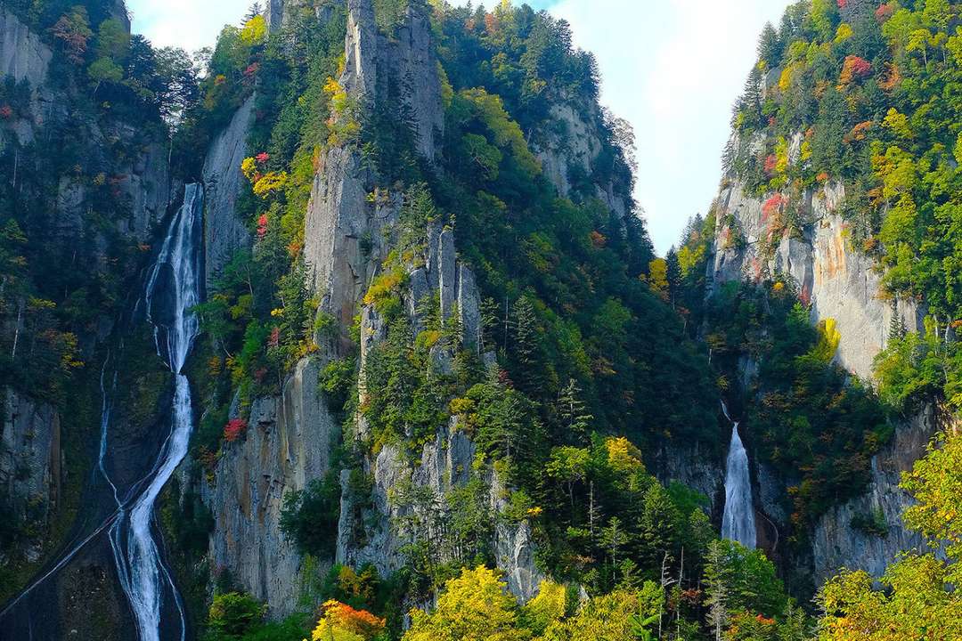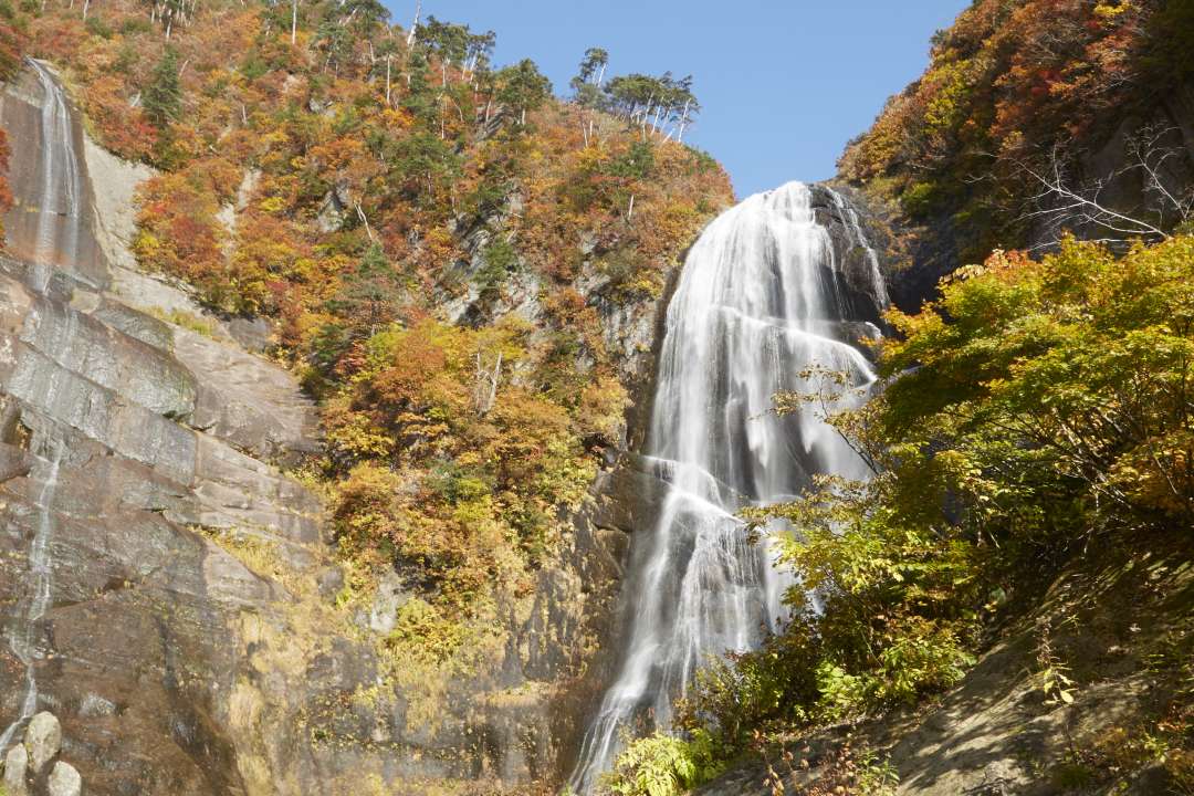 We start our adventure in the north in Hokkaido, the northernmost main island of Japan. In Japanese, ‘ryusei’ means shooting star or meteor, and ‘ginga’ means Milky Way, making the names of this waterfall pair Shooting Star and Milky Way Falls. Located in the Sounkyo Onsen area in Kamikawa, this pair of waterfalls cascades down from 90 metres and 120 metres respectively into the Ishikari River. There is an observation area that is a quick walk from a parking area that will let you see both waterfalls at the same time, and take in the beauty that made them part of the top 100 waterfalls in Japan. In autumn, the surrounding scenery comes alight with the changing leaves, framing the falls even more. You can access the waterfalls from JR Kamikawa station by taking a bus bound to Sounkyo, alighting at the last stop and transferring to a Lake Taisetsu bound service and getting off at Takimidai.