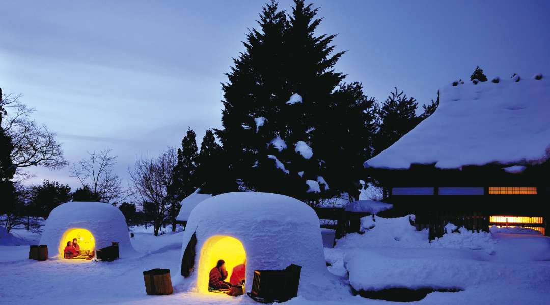 The pinnacle of snowscapes, the Yokote Snow Festival in Akita Prefecture is not one to miss. It’s a 400 year old festival that brings people from all over Japan to Yokote for two days every February (usually on the 15th and 16th). The area is filled to the brim with charming igloos, plucked straight from the pages of a storybook! Called ‘kamakura’ in Japanese, you can see igloos fill the horizon with the warm light inviting you to take a seat inside. Every kamakura is equipped with an altar to celebrate the water gods, and pray with sake and rice cake offerings. All you have to do to celebrate like a local is sit down inside an igloo and enjoy some rice cakes and amazake (sweet non-alcoholic sake)!