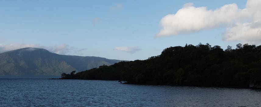 At the end of the Edo period, Lake Towada was used for irrigation, but now is an excellent fishing location for trout, salmon, carp, and Japanese eel. Temperate forests surround the lake, becoming notably beautiful during the autumn for fall foliage. Today, a leisurely lake cruise can display stunningly beautiful views of the high mountains bordering Aomori and Akita. With a depth of 1075 feet, Lake Towada is the third deepest lake in Japan, but has waters so clear, a depth of up to 35 feet can be seen by the naked eye.