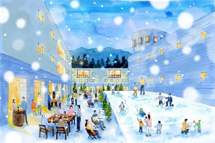Hoshino Resorts RISONARE Yatsugatake (Hokuto city, Yamanashi Prefecture) is a wine resort located near Mt. Fuji between Yamanashi Prefecture and Nagano Prefecture, the premier wine producing regions in Japan. In the winter, this wine resort will turn into a snow resort for you to enjoy both winter skiing on the slopes and a traditional resort stay at the swimming pool of everlasting summer.