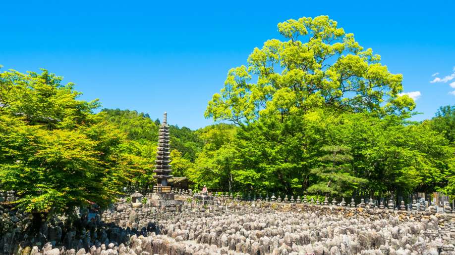Otro de los lugares que podamos visitar en Kioto y que son ciertamente parecidos a los que encontramos en la obra es el Templo Adashino Nenbutsu-ji, que sobrecoge a todo el que lo visita con sus más de 8000 estatuas dedicadas a almas de aquellos que murieron en soledad, muchos de ellos durante la peregrinación al sagrado Monte Atago, al oeste del templo