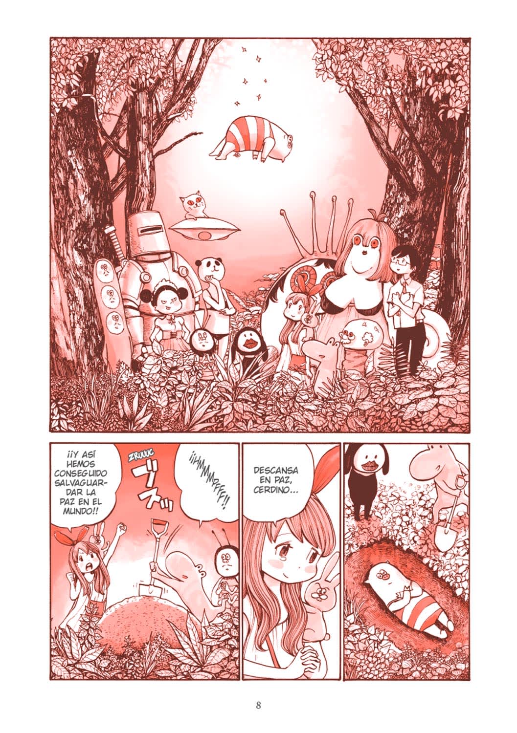 Héroes narra las aventuras de un grupo de héroes muy heterogéneo: una niña, una cucaracha parlante, un gato montado en una nave espacia, un panda en bikini con cuerpo humano… entre otros, que solo podrían salir de la creatividad de Asano, quien se vale de ellos para criticar mordazmente diferentes temas (el odio, la discriminación, la hipocresía… e incluso los estereotipos que pueblan los mangas de aventuras). Conocemos a estos héroes tras librar la batalla final contra su enemigo común, el Tenebroso. Sin embargo, ahora que han derrotado lo que les unía, ¿podrán salvar sus diferencias?
