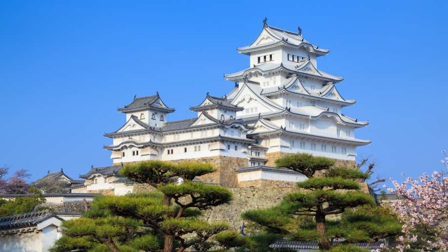 Castillo de Himeji, Patrimonio Mundial por la UNESCO. El complejo comprende 74 estructuras, que incluyen una torre y una puerta declaradas Bienes de Interés Cultural de Japón