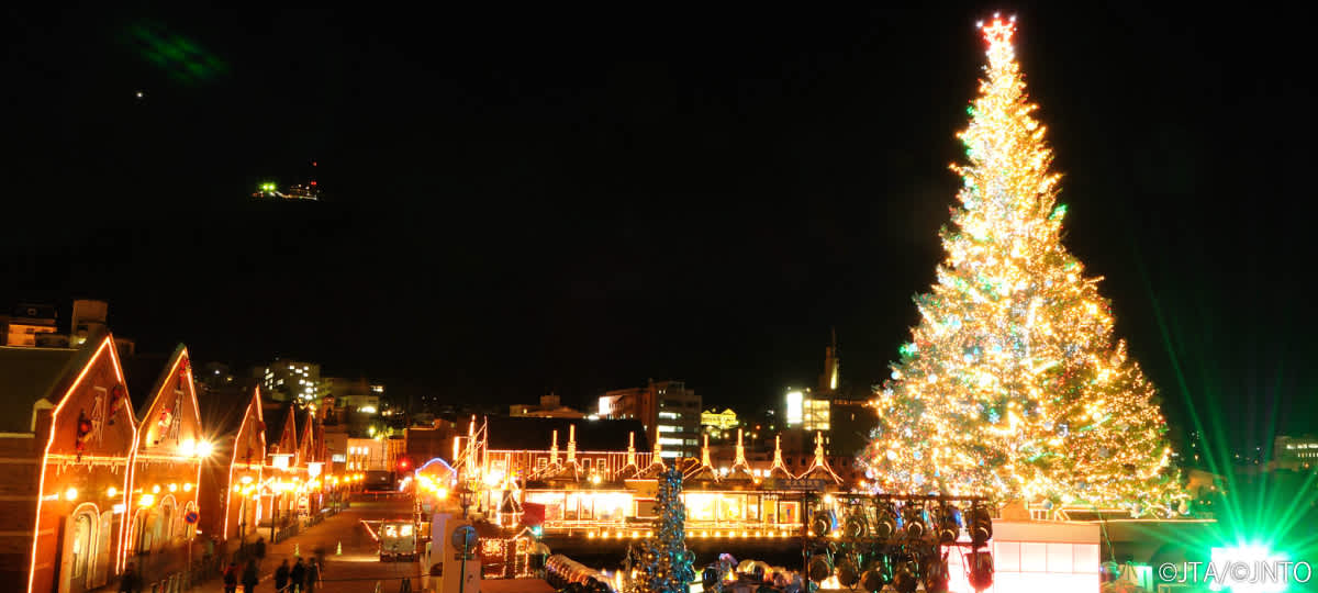 Cada invierno, se produce todo un despliegue de fantasía navideña delante de los tradicionales almacenes de ladrillo en la zona portuaria de la ciudad de Hakodate, en el extremo norte de Japón.