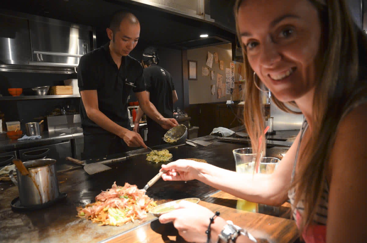 Somos absolutos apasionados de la comida japonesa. Udon, yakisoba, takoyaki, gyozas de todo tipo y, por supuesto, sushi y sashimi como no hemos comido en ningún lugar del mundo. Nos encantaban las tabernas con cintas giratorias que te presentaban los platos o kaitenzushi donde además comías por muy poco dinero, o la mencionada carne de Kobe que probamos tanto en Tokio como Kobe, aunque quizás la sorpresa más positiva fue la verdadera ceremonia que resulta cualquier okonomiyaki, esa especie de tortilla japonesa (o pizza, no sabríamos definirla) que se preparaba en planchas delante de nosotros tanto en Osaka como Tokio. ¡Espectacular!