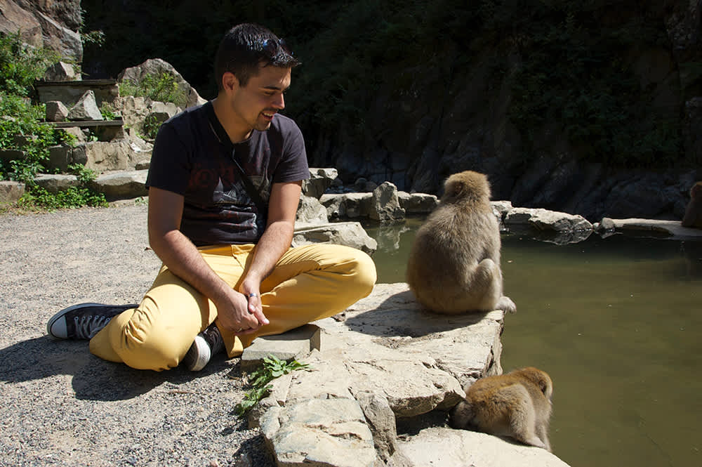 Desde ahí fue todo un viaje sin poder cerrar la boca de asombro: conocer Yamagata y el templo de Yamadera en lo alto de la montaña, cuyas arrebatadoras vistas hacen que subir esos más de mil escalones merezca totalmente la pena. Visitar el parque natural de Jigokudani y los macacos que lo pueblan que, aunque en esa época no hacía el frío suficiente como para que necesitaran bajar a calentarse en las piscinas termales, sí vinieron a decenas a correr por las termas un rato, conocer turistas… y ver si sacaban algo de ellos (¡a nosotros al menos nos hurgaron la bolsa de la cámara como carteristas profesionales en cuanto nos despistamos!).