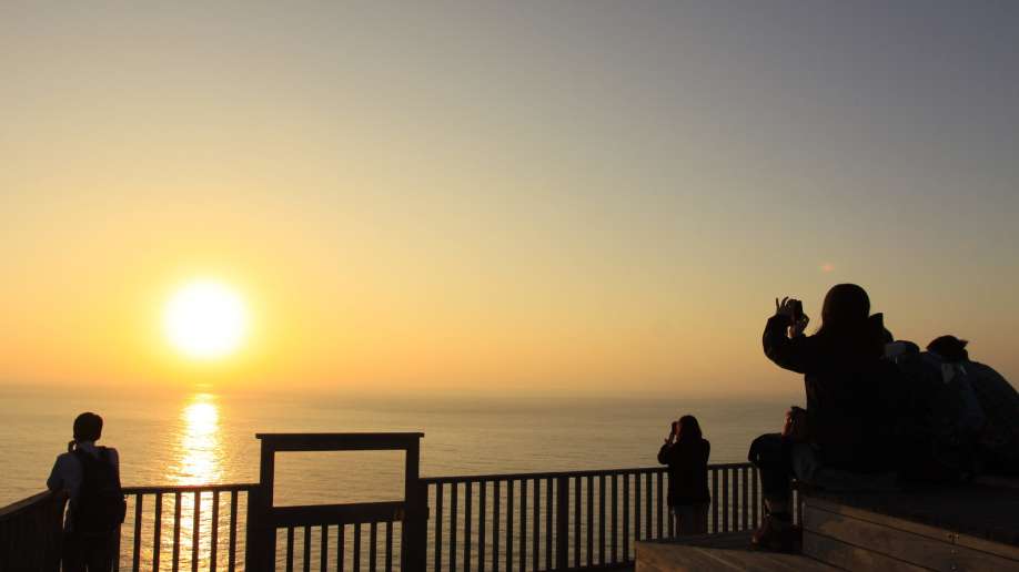 Para compartir un momento especial en esta isla, deberéis ir a Weather Station, cuyo nombre oficial es mirador Mikazuki-yama, a 10 min desde el puerto de Futami en coche o autobús. Las vistas panorámicas desde aquí no pueden compararse con ningún otro sitio. La puesta de sol desde aquí es famosa en todo Japón, pero es que, además, aquí sucede un “milagro de la naturaleza”. ¿Habéis oído hablar del fenómeno green flash? Ocurre cuando el sol brilla verde junto cuando se hunde en el horizonte. Eso sí, solo se da bajo unas condiciones muy estrictas como que el aire tiene que ser muy puro y no hay nubes cerca del horizonte.