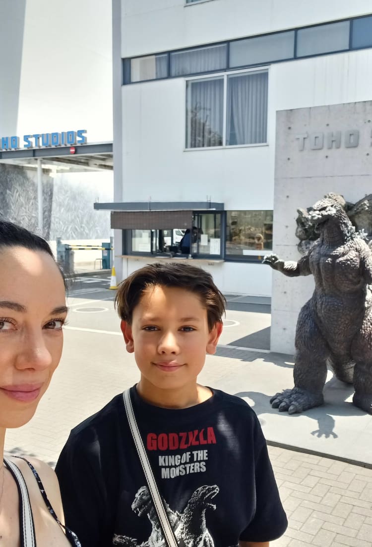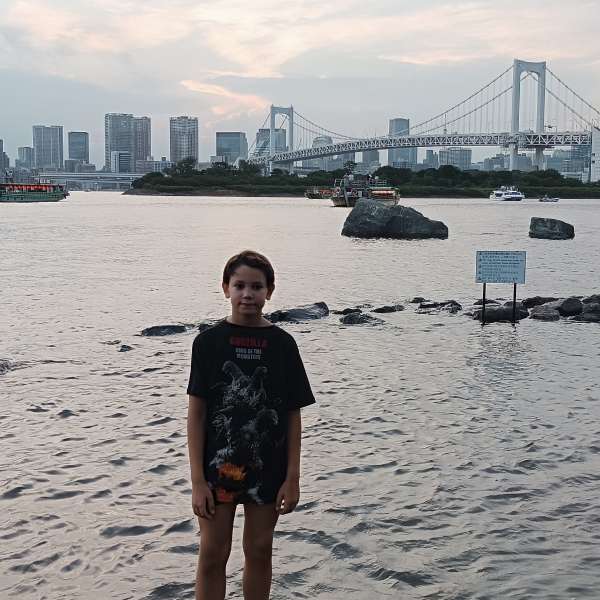 Tokio: porque es muy grande, hay de todo para niños, hay muchas cosas de Godzilla, anime, manga, la bahía de Tokio y la vista desde Odaiba le encantó… y también el exterior de los Estudios Toho en Setagaya.
