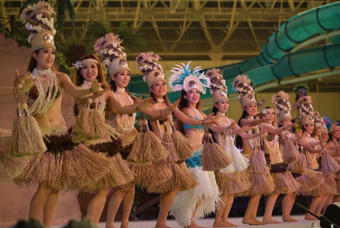 Las indiscutibles estrellas y la razón de ser del centro vacacional son las Hula Girls. A diario ofrecen un espectáculo polinesio en el Beach Theater del parque acuático. Tras el terremoto y el tsunami del 2011, las Hula Girls visitaron numerosos centros de evacuación y recorrieron Japón para promover el turismo en Iwaki. Por eso ocupan un lugar especial en el corazón de los japoneses.