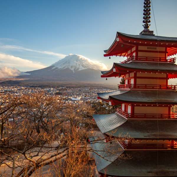 La région des 5 lacs, nommée ainsi en référence aux 5 lacs qui s'y trouvent (les lacs de Motosu, Shoji, Sai, Kawaguchi et Yamanaka), se situe au pied du mont Fuji. Avec ses 3776 mètres d'altitude, le Mont Fuji, est la plus haute montagne du Japon. C’est une destination connue des randonneurs qui souhaitent faire l’ascension du volcan et c’est également la plus sacrée des trois montagnes sacrées du Japon (les autres étant les monts Tate et Haku).