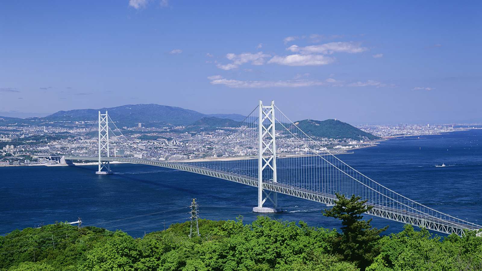 Le joyau de l’île Awaji est sans doute le pont Akashi Kaikyo, le deuxième pont suspendu le plus long du monde qui connecte Awaji à l’île principale du Japon. Une vue panoramique sur le détroit d'Akashi et la baie d'Osaka peut être admirée le long de la promenade maritime de Maiko, une passerelle qui offre une vue unique sur les dessous du pont, ou au sommet des tours de 300 mètres de haut, sur des tours spéciales.