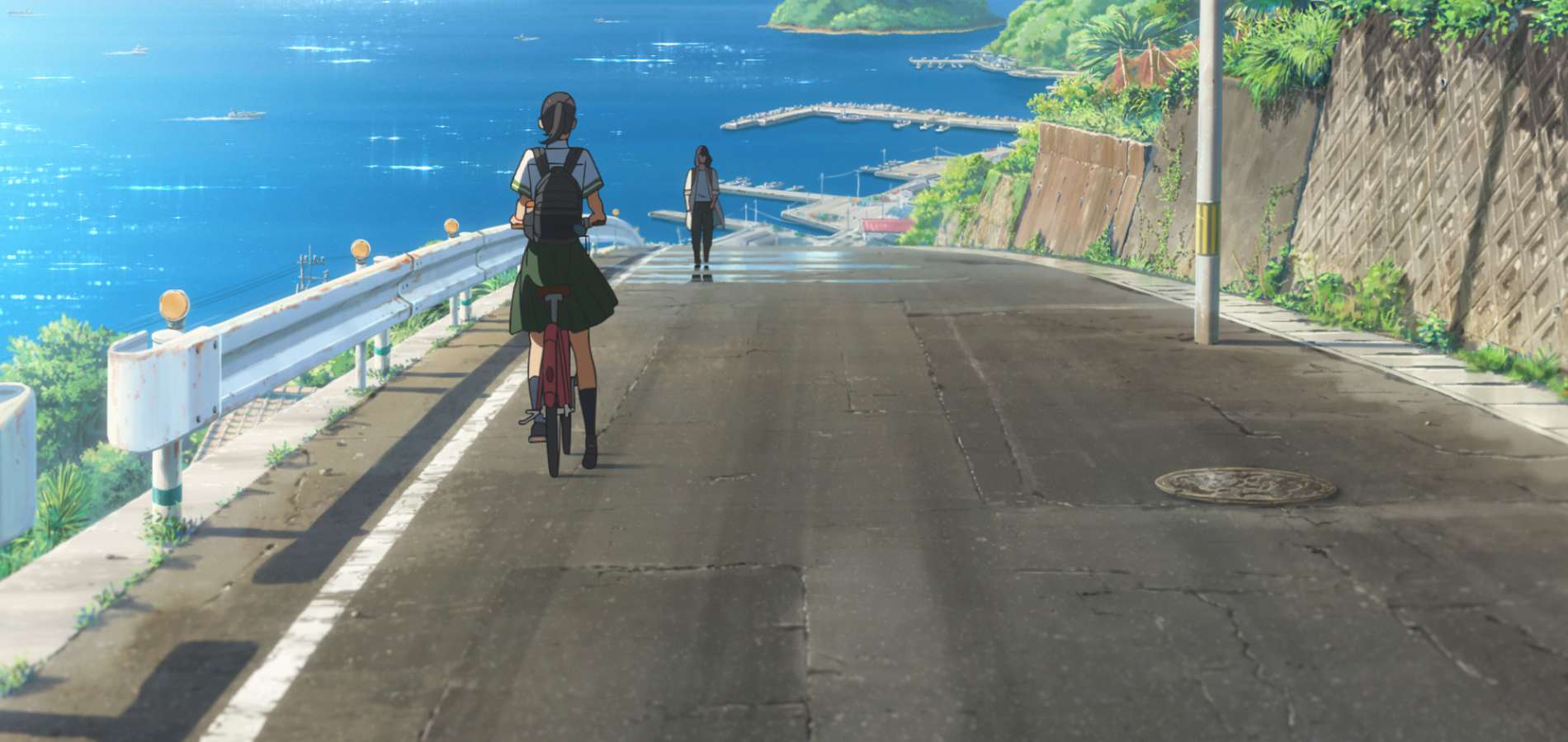Bien que la pittoresque et tranquille ville portuaire dans laquelle vit Suzume et sa tante soit fictive, les détectives parmi vous et le public japonais ont repéré plusieurs indices qui indiquent que le début du film se passe dans le département de Miyazaki à Kyushu : le bulletin météo régional montré à la TV, les plaques d’immatriculation des voitures ainsi que le dialecte local des camarades de classe de Suzume.