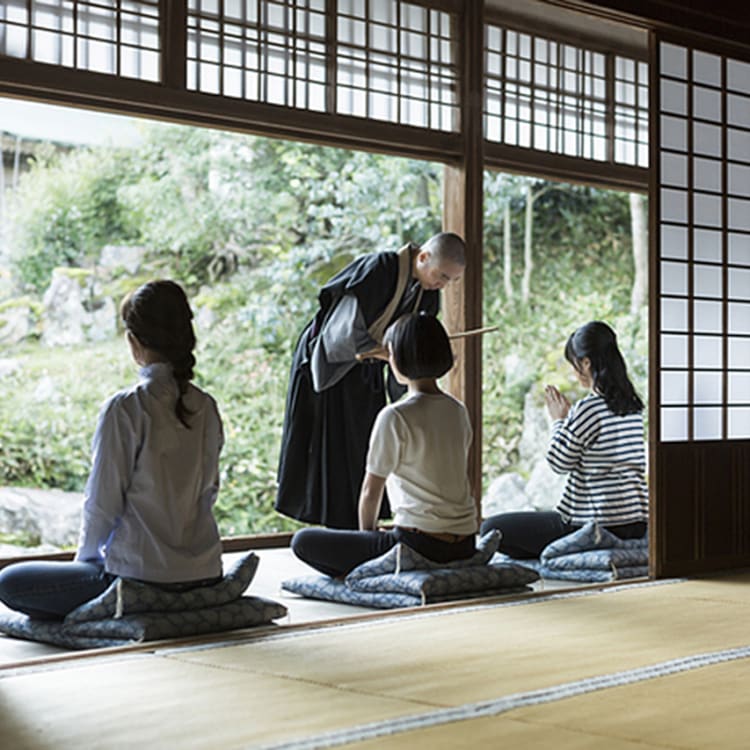 Rechercher la tranquillité de lʼesprit. Sʼattacher à lʼinstant présent. Méditer mais rester dans le réel. Le zen est une attitude, un voyage intérieur, une quête et non une foi. Dans la tradition bouddhique, cette école insiste sur lʼimportance de vivre lʼexpérience directe et intuitive. Deux principales branches transmettent cet enseignement. Importée du continent par le moine Dôgen, lʼécole Sôtô met lʼaccent sur la rencontre du maître et du disciple et sur la méditation assise dans la posture du lotus et silencieuse, cʼest-à-dire le zazen. Lʼécole Rinzai, elle, accorde une place importante au kôan, question sans logique, parfois humoristique, toujours déstabilisante. « Si vous rencontrez quelquʼun qui a découvert la vérité, il ne vous est pas permis de dire quelque chose quand il passe, ni de rester en silence. Alors comment allez-vous lʼaborder ? ». Les pratiquants considèrent que ces énigmes sont source de méditation et un moyen de provoquer lʼéveil (satori en japonais).