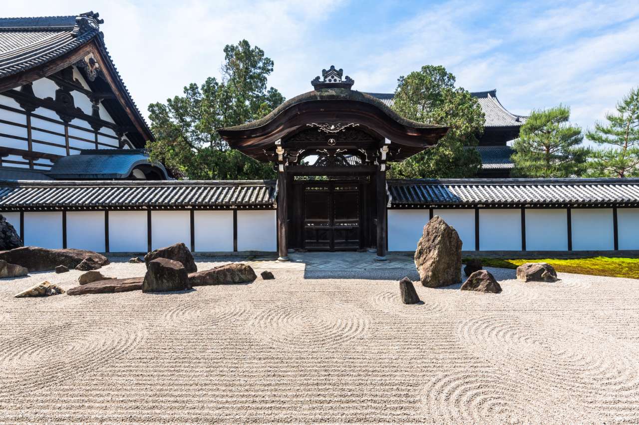 Au sein de ce prestigieux monastère zen de lʼécole Rinzai, quatre jardins contemporains, dessinés en 1938 par SHIGEMORI Mire sont dʼexcellents exemples de compositions minérales ou végétales modernes conservant vivant lʼesprit du zen.